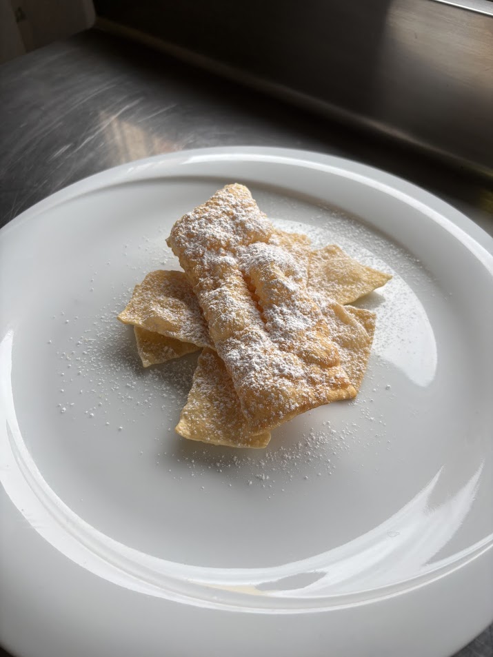 | Galani (Veneto) | Aromi delicati (vaniglia, limone); sfoglia sottile ma non estrema; equilibrio tra croccantezza e masticabilità; forma allungata. |