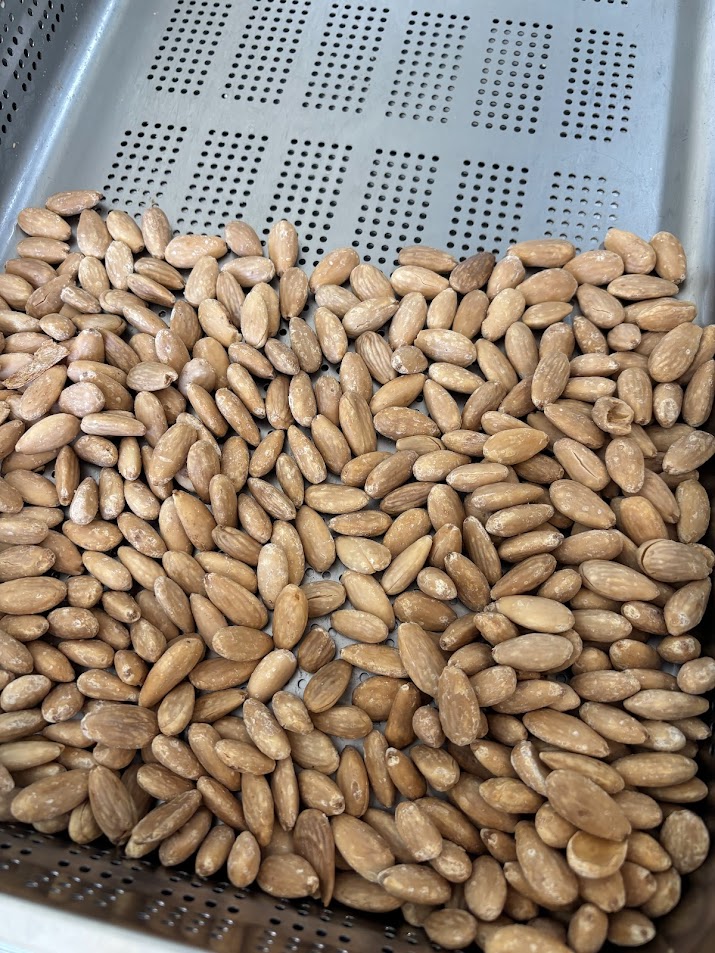 Tostare le mandorle a 160°C per 15/18min. (a doratura), versare nel bimby calde con zucchero a velo e sale. Frullare a massima velocità fino a creare una cremina.