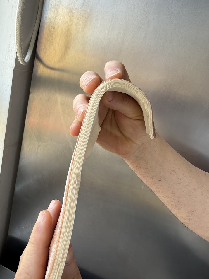 Formare dei triangoli di 8cm di base e 24cm di altezza, far lievitare senza superare i 26° gradi per circa 6 ore.