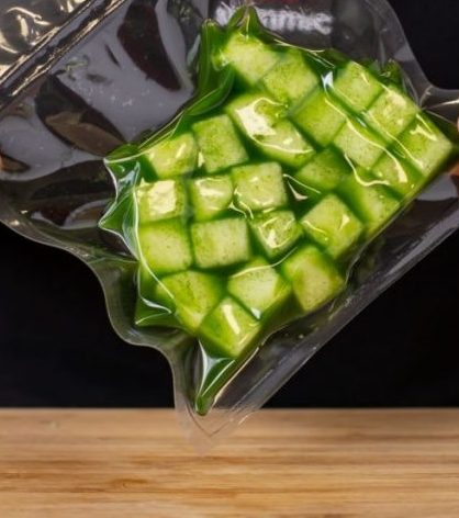 Versare il tutto in un sacchetto per il il sottovuoto, creare l’osmosi almeno tre volte.
