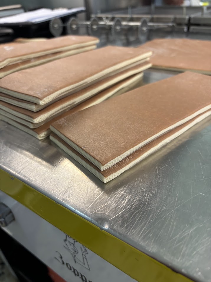 Sfogliare dando una piega da 3 e una da 4 (tenere sempre una temperatura fredda).