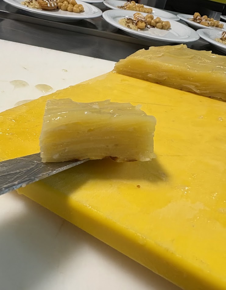 Raffreddare la torta, fare delle monoporzioni, adagiare le monoporzioni su carta da forno ed infornare a 200°C per 10min. servire con la portata principale.