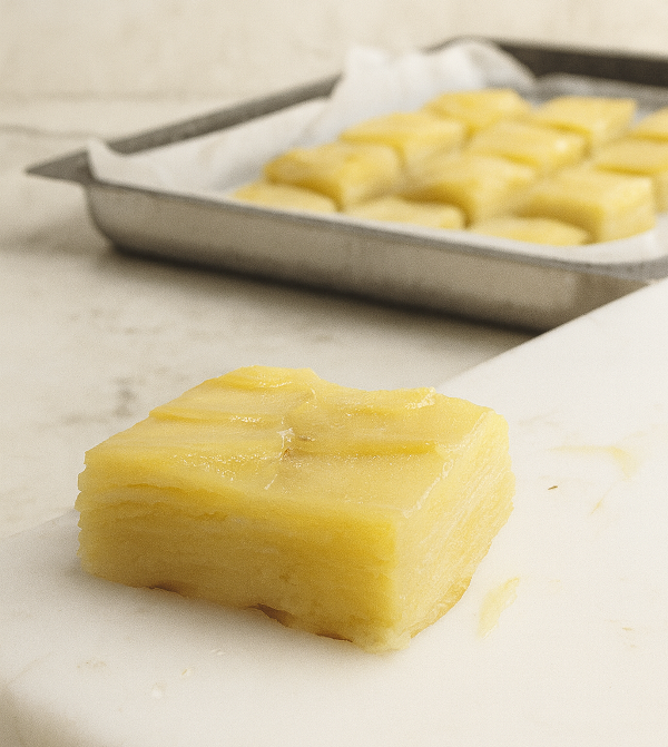questa ricetta è tratta daIla Gâteau de pommes de terre au reblochon o Torta di patate Reblochon, pommes fondant. La diffusione della “patata fondente” (termine che indica l’introduzione e la rivalutazione della patata) in Francia è legata alla figura di Antoine-Augustin Parmentier nel XVIII secolo. La sua campagna, basata sull’astuzia e la perseveranza, mirava a far accettare questo tubero, inizialmente disprezzato, come alimento per le classi più povere, trasformandolo da sospetto a risorsa fondamentale.